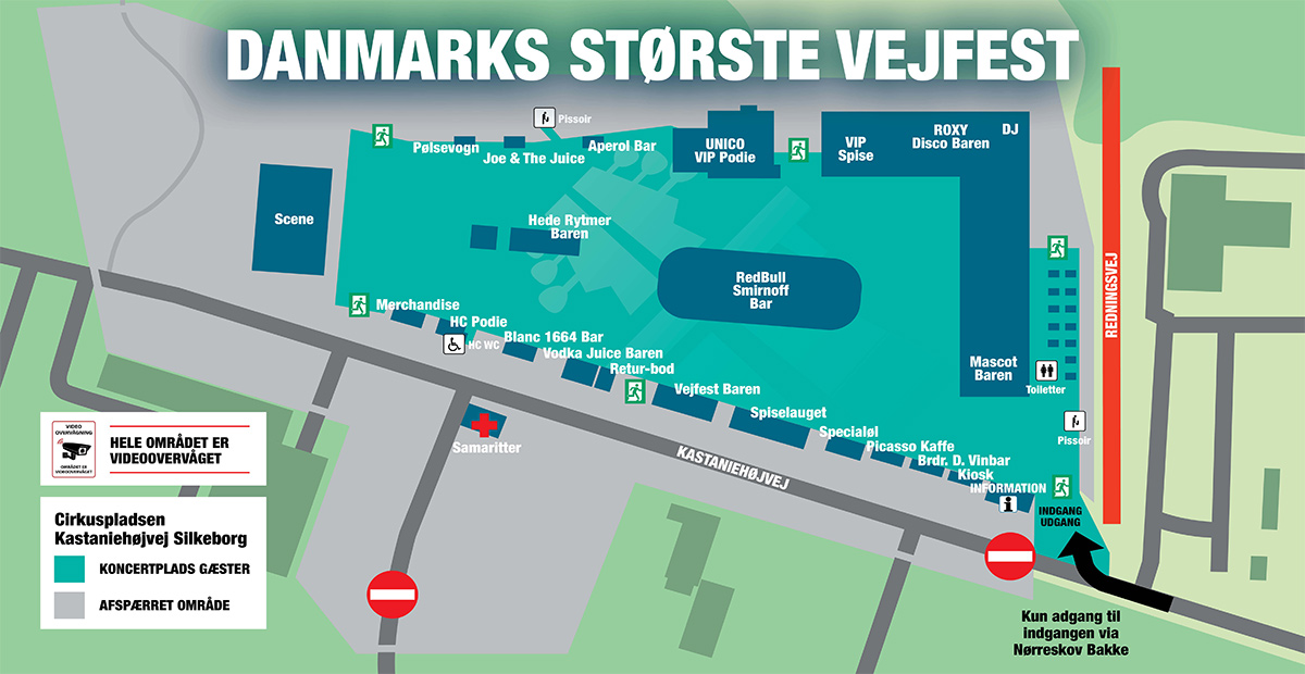 Festivalindgang ved Kastaniehøjvej, indgang fra Nørreskov Bakke. Vi åbner fredag kl. 15 og lørdag kl. 12. Det er muligt at scanne billetter og få armbånd 30 minutter før festivalen åbner. Vi anbefaler at komme i god tid. Bemærk at scanning af billetter ved indgangen lukker kl. 21.30.